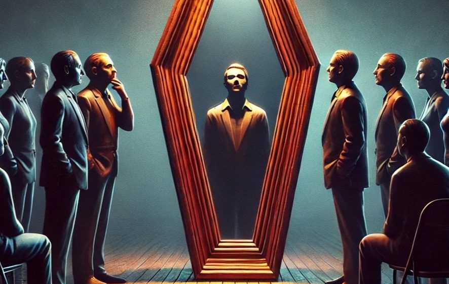 فضای سالن مملو از سکوت و تأمل بود. افراد با کنجکاوی و کمی اضطراب به تابوت نزدیک میشدند و با خود فکر میکردند: